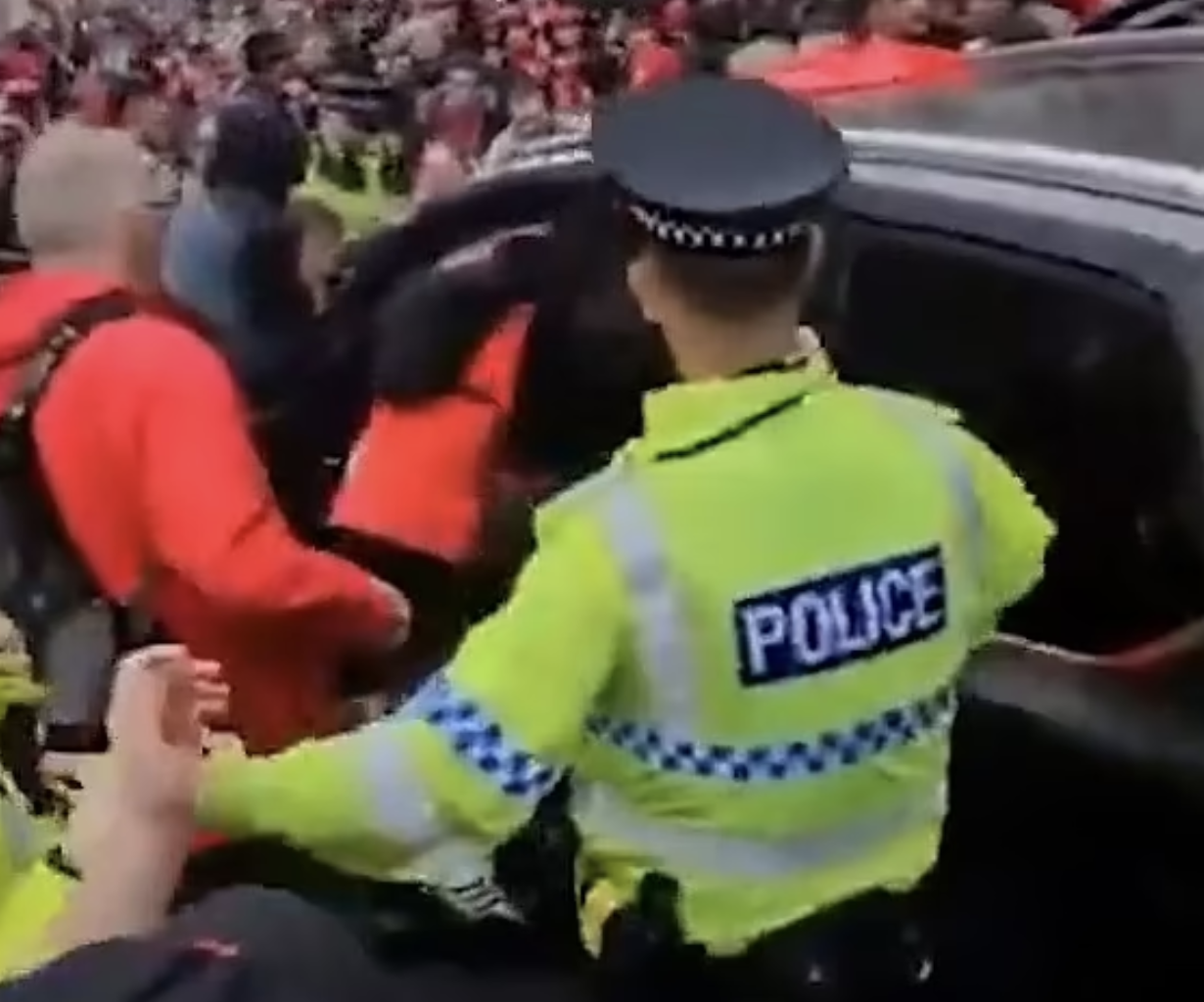 The vehicle reportedly followed an ambulance past a temporary barricade that had been lifted to let emergency services reach a fan suffering a suspected heart attack. Dashcam footage from the suspect’s car is being analysed as part of the investigation.