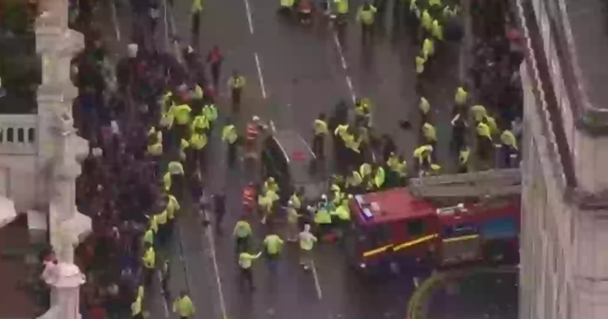 One disturbing video, filmed from a nearby building, appeared to show pedestrians being hit one after another as shocked fans screamed from the pavement.