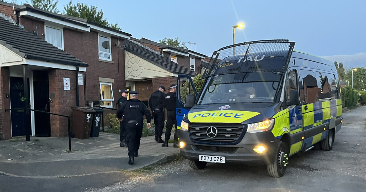 Neighbours in Rochdale said they heard a loud bang as officers forced entry to one address, where a man was marched outside in just his underwear. A total of five Iranian nationals were arrested, with four remaining in custody tonight after magistrates granted detectives an extension to hold them for questioning until May 10.